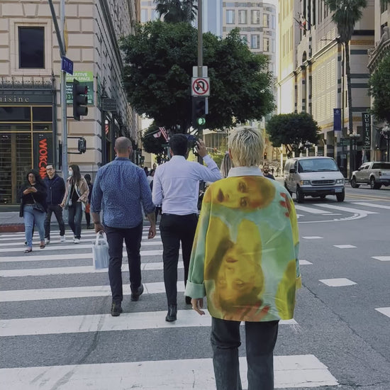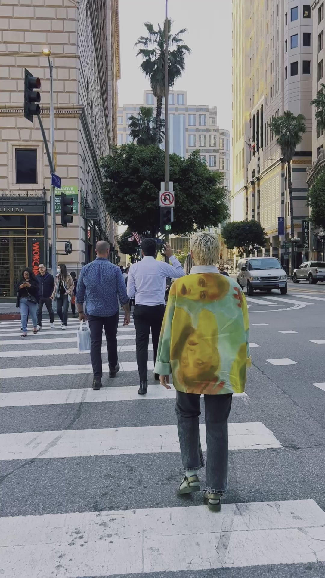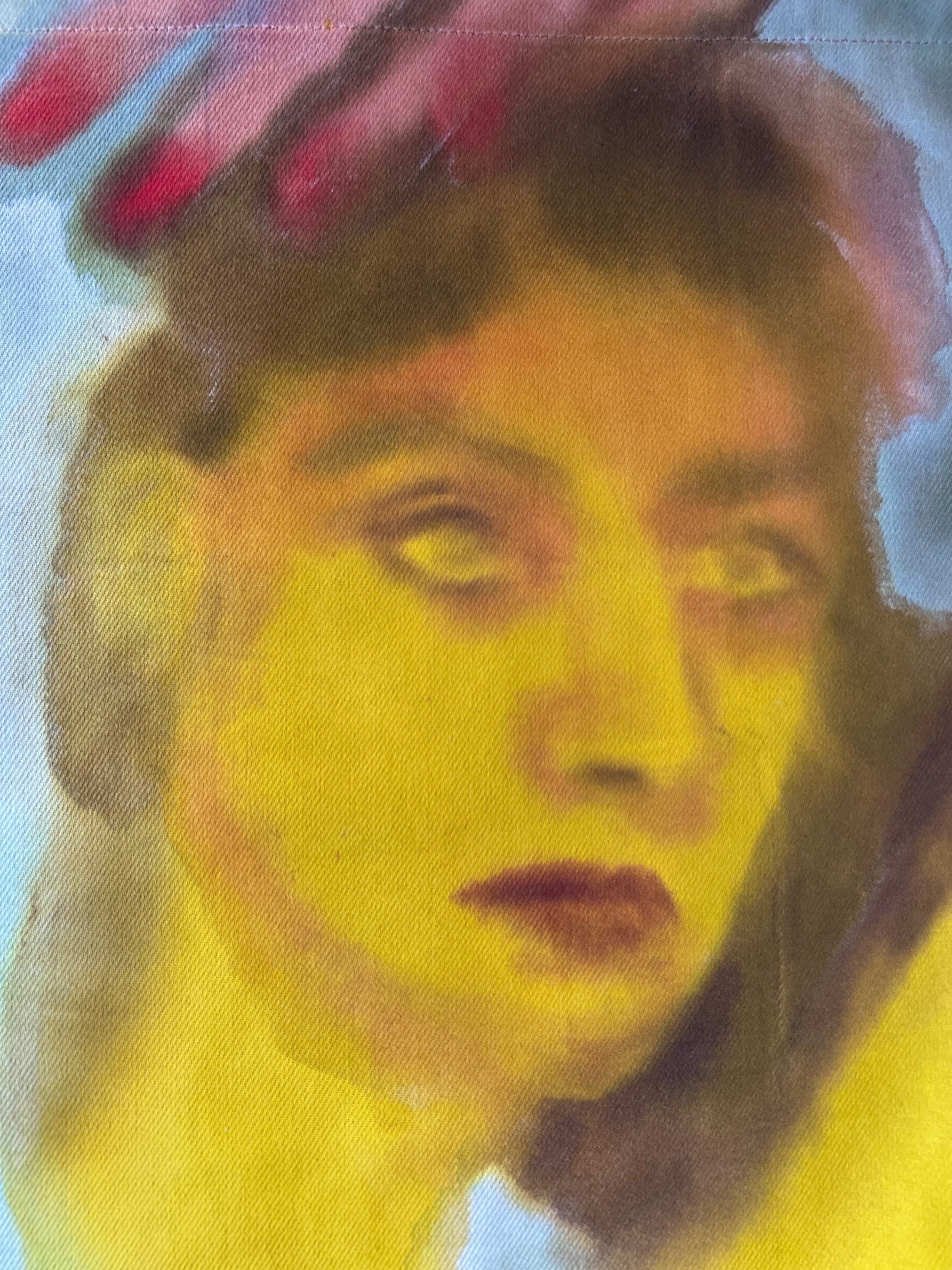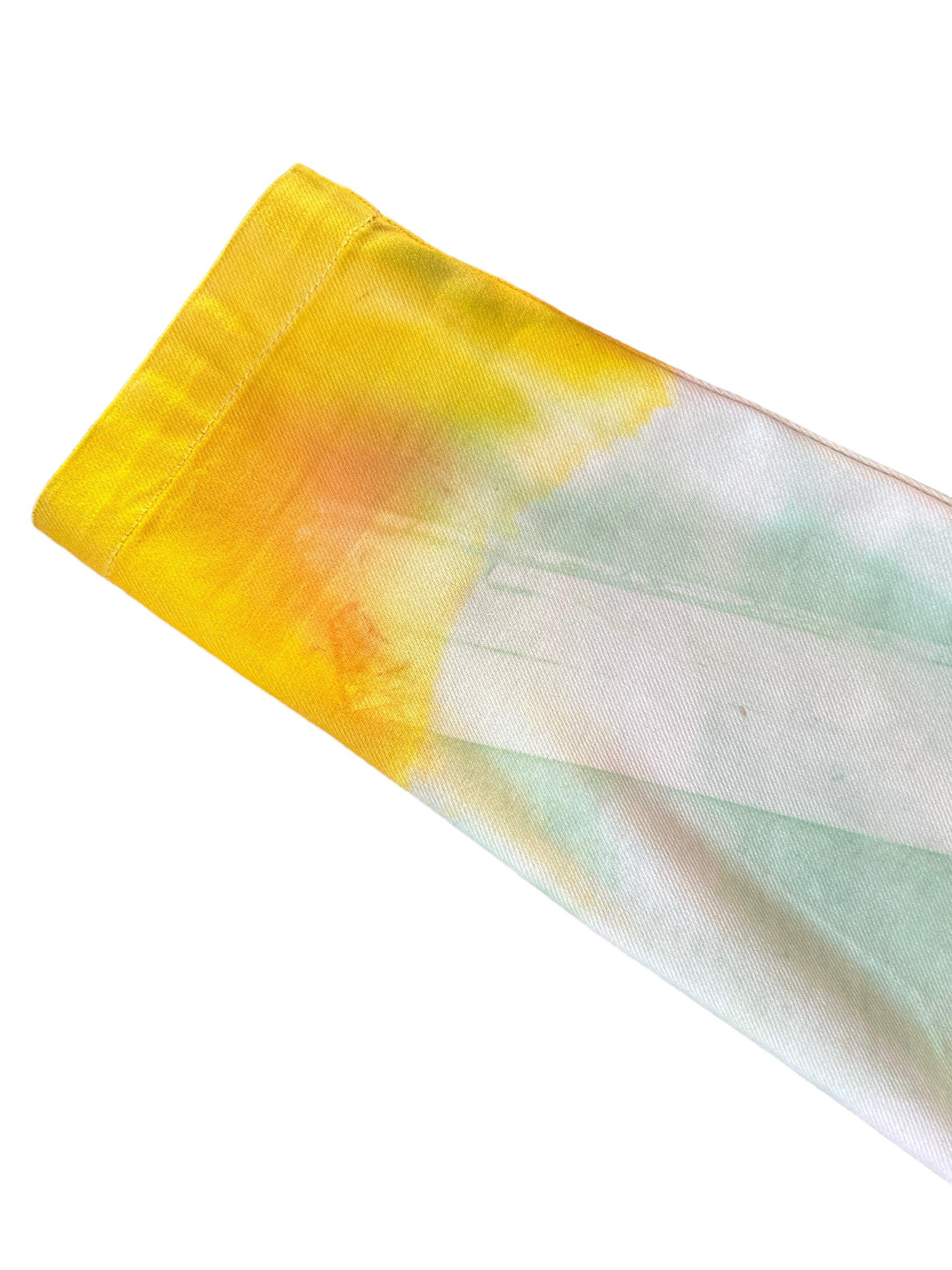 custom, hand-painted chore coat • 100% thick cotton twill • straight cut hem • no lining • men’s size L • sleeve length 25” • shoulder width 21” • back length 28” • machine washable • 1 of 1 • made in New Orleans